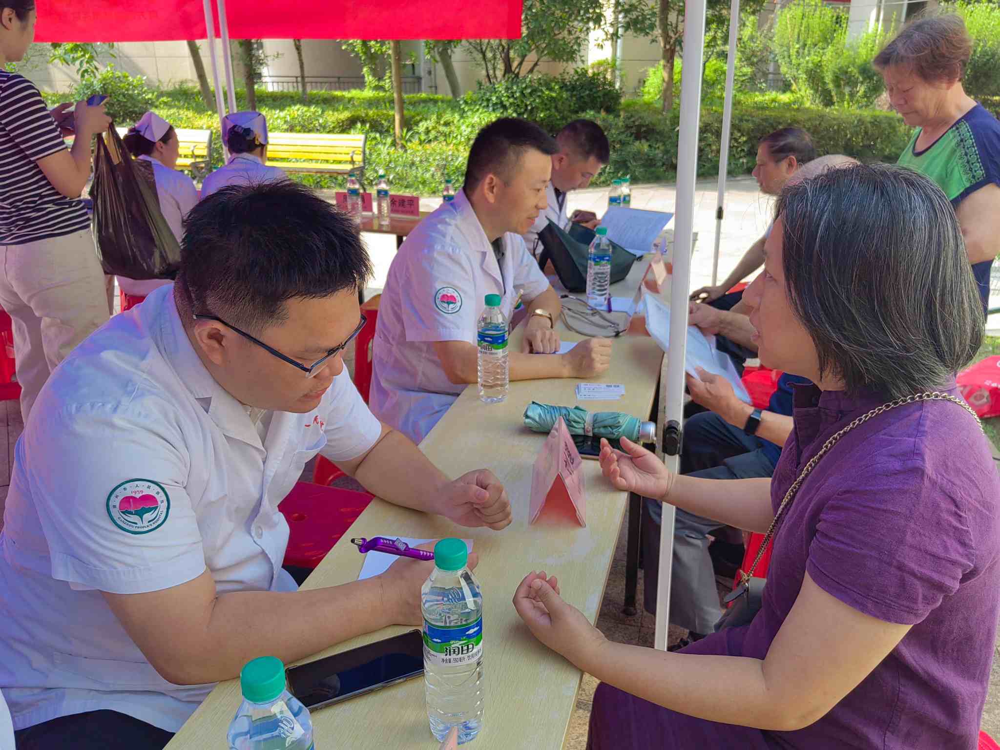 芳菲歇去何須恨,夏木陰陰正可人。為踐行“我為群眾辦實事”的服務理念,積極響應國家關于提升基層醫(yī)療服務水平、關愛居民健康的號召,切實解決群眾看病就醫(yī)的實際問題。在小區(qū)迎來業(yè)主入駐十周年慶典之際,7月5日上午燕興集團聯(lián)合南方醫(yī)院贛州醫(yī)院(贛州市人民醫(yī)院)博士團隊走進水南街道登峰社區(qū)公園壹號義診服務點,開展了“博士站一周年,院社合作啟新篇”為主題的大型義診活動。此次活動旨在為居民提供便捷、實用的服務,用愛意傳遞服務,用實際行動傳遞關懷,促進鄰里和諧,增強社區(qū)凝聚力,為社區(qū)居民提供免費健康檢查與咨詢服務,切實將優(yōu)質醫(yī)療資源送到居民家門口,受到了廣大居民的熱烈歡迎和積極參與,為社區(qū)居民帶來了一場全方位、高質量的健康關懷盛宴。