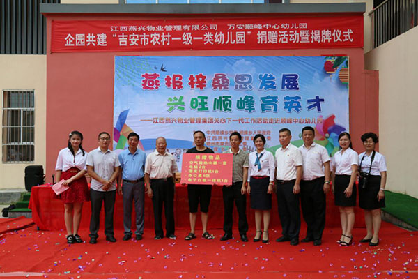 捐贈(zèng)活動(dòng)中,進(jìn)行了順?lè)遴l(xiāng)企園共建吉安市農(nóng)村一級(jí)一類(lèi)幼兒園的揭牌。