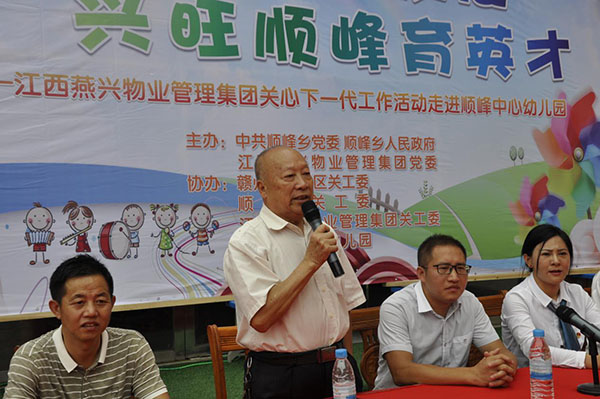 江西燕興物業(yè)管理集團(tuán)黨委書(shū)記、董事長(zhǎng)、關(guān)工委主任劉燕的講話(huà)情真意切:親不親家鄉(xiāng)人,美不美故鄉(xiāng)水,我是順?lè)遴l(xiāng)人,美好的童年是在家鄉(xiāng)度過(guò)的。雖然我在贛州創(chuàng)業(yè),但有著揮之不去的家鄉(xiāng)情結(jié)。數(shù)年來(lái),燕興集團(tuán)董事長(zhǎng)劉燕一直熱衷公益,回報(bào)社會(huì),為貧困山區(qū)捐款捐物、捐資助學(xué)、為解決下崗職工、農(nóng)民工的就業(yè)問(wèn)題而不懈努力。
