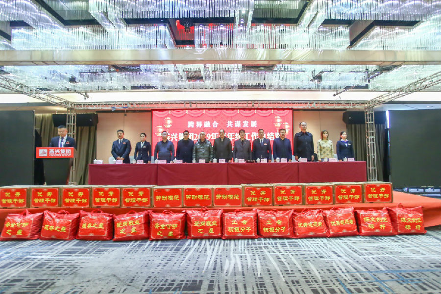 玉豬如意樂辭舊,金鼠祥瑞喜迎新。為總結(jié)經(jīng)驗(yàn),表彰先進(jìn),全力開啟2020年工作全新局面,助推集團(tuán)高質(zhì)量發(fā)展。燕興集團(tuán)于2020年1月2日,在沃爾頓國(guó)際酒店隆重舉辦燕興集團(tuán)2019年度“跨界融合、共謀發(fā)展”工作總結(jié)表彰大會(huì)暨2020新年聯(lián)歡晚會(huì)。集團(tuán)領(lǐng)導(dǎo)、各部門、分公司負(fù)責(zé)人和獲獎(jiǎng)員工共400余人參加大會(huì)。