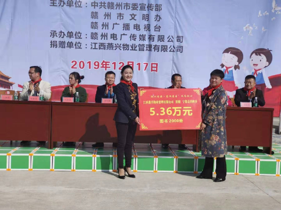 公司董事長劉燕在捐贈儀式上說:“一本好書成就一個夢想,捐贈一本書,奉獻一份愛,希望學(xué)校越辦越好,為社會培養(yǎng)出更多更優(yōu)秀的人才。我們燕興物業(yè)將繼續(xù)秉承中華民族的傳統(tǒng)美德,飲水思源、感恩社會、回饋社會、不忘初心、繼續(xù)關(guān)注教育,為助力社會公益事業(yè),關(guān)注蘇區(qū)發(fā)展,盡燕興人的綿薄之力?!?/p>