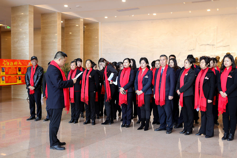 燕興集團(tuán)黨委在第二批“不忘初心牢記使命”主題教育系列活動(dòng)內(nèi)容豐富,對(duì)2019年的預(yù)備黨員曹運(yùn)莉、陽敏同志和新進(jìn)的流動(dòng)黨員進(jìn)行了授黨徽和授燕興黨委胸牌儀式;預(yù)備黨員分別講述了發(fā)生在蘇區(qū)時(shí)期贛南的真實(shí)故事《八子參軍》、《馬前托孤》;預(yù)備黨員在莊嚴(yán)的黨旗下舉手宣誓,全體人員集體重溫入黨誓詞后,跟隨講解員參觀了贛南蘇區(qū)歷史展館。