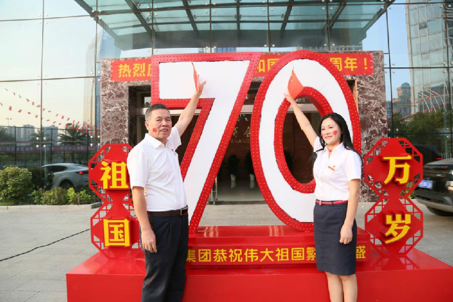 隨后董事長劉燕和總經(jīng)理劉南斗懷著無比激動(dòng)的心情將小國旗插在了象征著祖國70周年華誕紀(jì)念的花牌上。員工們揮舞著五星紅旗,齊唱《我和我的祖國》,表達(dá)對祖國深切的祝福和濃濃的愛國熱情。