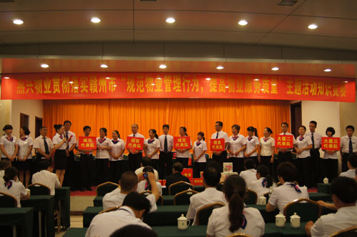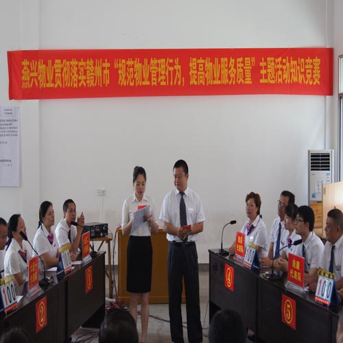 為全面貫徹落實《贛州市開展“規(guī)范物業(yè)管理行為,提高物業(yè)服務(wù)質(zhì)量”主題活動實施方案》的通知精神,提高員工物業(yè)管理專業(yè)知識和業(yè)務(wù)能力,在員工中掀起“比、學(xué)、趕、幫、超”的學(xué)習(xí)熱潮,2013年6月8日下午14:20分,燕興物業(yè)在贛州賓館二樓會議廳舉辦了貫徹落實贛州市“規(guī)范物業(yè)管理行為,提高物業(yè)服務(wù)質(zhì)量”主題活動的知識競賽。