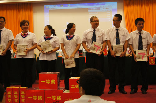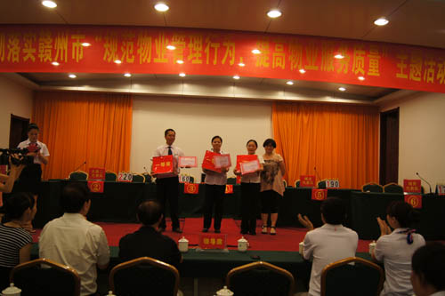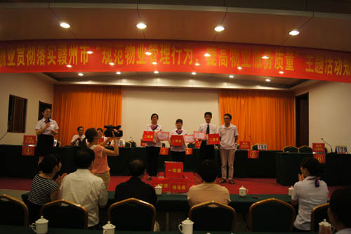 參賽隊伍以城東、城南、城北、城西、贛縣、南康、信豐項目部為單位組成7支代表隊,拔款單位組成5支代表隊,共組成12支代表隊。競賽分為初賽和決賽兩部分,初賽采用從12支代表隊中決出6支優(yōu)勝隊進(jìn)入決賽。經(jīng)過緊張的初賽,進(jìn)入決賽的隊伍分別是城東、城西、城北、贛縣、大廈二、大廈三六支代表隊。經(jīng)過必答題、搶答題、風(fēng)險題三個環(huán)節(jié)的激烈角逐,最后大廈二隊以總分230分奪得桂冠。城北隊、城東隊分別獲得第二名、第三名。市房管局、市物協(xié)和公司領(lǐng)導(dǎo)分別為獲獎隊伍頒發(fā)了榮譽證書及獎品。