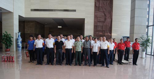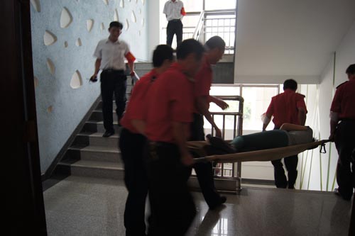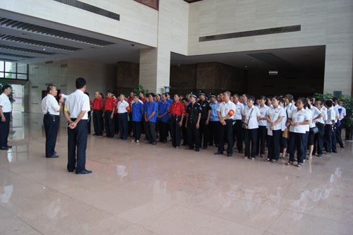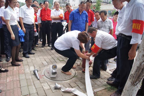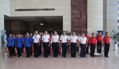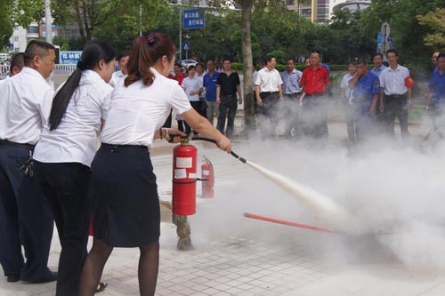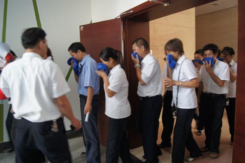 2013年7月22、27日,公司領(lǐng)導(dǎo)和各部門、各管理項(xiàng)目負(fù)責(zé)人及秩序維護(hù)班隊(duì)長、水電工約100余人參加了在贛州市歷史文化和城市建設(shè)博物館舉辦的消防安全演習(xí)。演習(xí)項(xiàng)目有模擬火災(zāi)現(xiàn)場中的緊急疏散、火災(zāi)逃生、醫(yī)療救護(hù)等項(xiàng)目,并有專人指導(dǎo)大家正確使用滅火器、室外消防栓的連接和使用等。上午9時(shí),在火災(zāi)現(xiàn)場總指揮張衛(wèi)東副總經(jīng)理的指揮下,秩序維護(hù)員發(fā)出火警報(bào)警信號(hào)。各演練工作組在聽到指令后,迅速到位,參加演練的義務(wù)消防員和工作人員全部佩戴消防演習(xí)標(biāo)識(shí),在最短的時(shí)間內(nèi),進(jìn)入展示廳、樓梯間及安全出口處,疏散組、救護(hù)組、滅火組通過口令加手勢,指揮員工從指定路線進(jìn)行有秩序地疏散,將現(xiàn)場所有人員,快捷有序地疏散到安全地帶。扮演群眾演員的公司管理人員在疏散組的指揮下從起火的樓層中手捂口鼻,俯身逃生;救護(hù)組成員抬著擔(dān)架上的受傷人員迅速從火災(zāi)現(xiàn)場撤離;滅火組成員手提滅火器迅速?zèng)_往起火點(diǎn),消防演練按照預(yù)定的方案,有序、緊張地進(jìn)行。這一切,雖然都是模擬火災(zāi)中可能發(fā)生的現(xiàn)場,但是,參加人員認(rèn)真莊重的態(tài)度使演練更顯逼真。