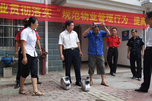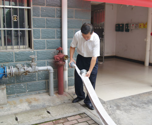 小區(qū)管理人員學(xué)習(xí)收卷水帶方法