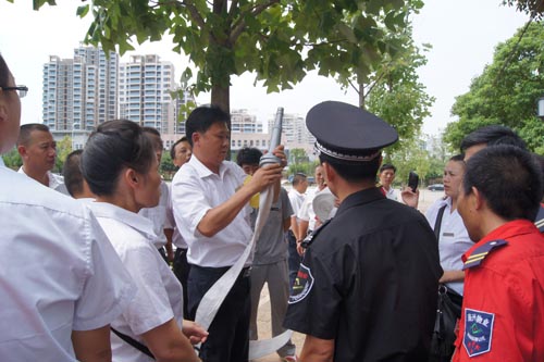 為了確保消防安全演練活動(dòng)落到實(shí)處,讓大家正確掌握使用滅火器、消火栓的方法,火災(zāi)現(xiàn)場副總指揮吳志軍經(jīng)理將大家集合在一起,對(duì)滅火器、消防栓的操作方法進(jìn)行了詳細(xì)講解,公司總經(jīng)理劉南斗也親自做了水帶連接示范動(dòng)作,各項(xiàng)目管理人員先后涌躍地親手操作了滅火器和水帶、水槍的連接。