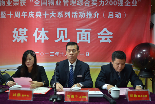 為慶祝燕興物業(yè)榮獲“物業(yè)管理綜合實(shí)力TOP200企業(yè)”暨十周年慶典十大系列活動(dòng),我公司于2013年10月31日9時(shí)30分在公司會(huì)議室召開媒體見面會(huì)。