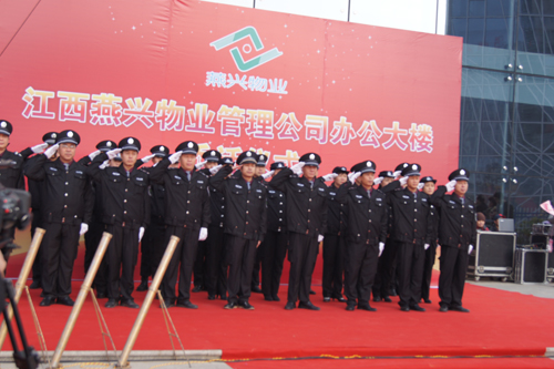 前來(lái)道喜的有物業(yè)企業(yè)的同行,有戰(zhàn)略合作伙伴,有各界的親朋好友等。在陣陣鑼鼓聲中喬遷儀式正式開(kāi)始。首先映入眼簾的是燕興物業(yè)秩序維護(hù)員向嘉賓們展示的風(fēng)彩,整齊的隊(duì)列、驕健的步伐、高昂的斗志,引來(lái)掌聲一片。隨后,燕興物業(yè)總經(jīng)理劉南斗致答謝辭,向來(lái)自四面八方的嘉賓、朋友們表示衷心地感謝。最后,中國(guó)物業(yè)協(xié)會(huì)秘書(shū)長(zhǎng)柴勇、燕興物業(yè)董事長(zhǎng)劉燕、吉安商會(huì)會(huì)長(zhǎng)劉振德等登臺(tái)一同為喬遷儀式剪彩。
