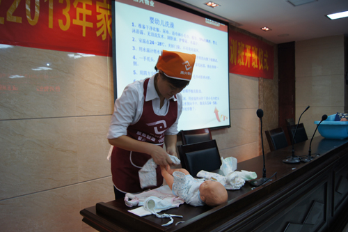 上圖:學(xué)員們在做模擬嬰幼兒起居護(hù)理實(shí)操