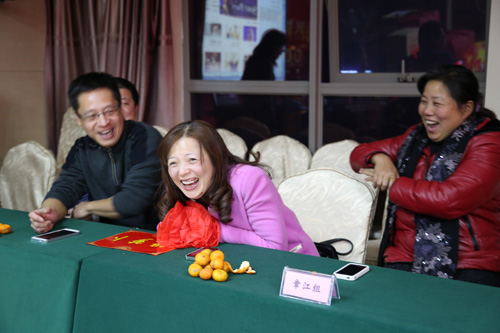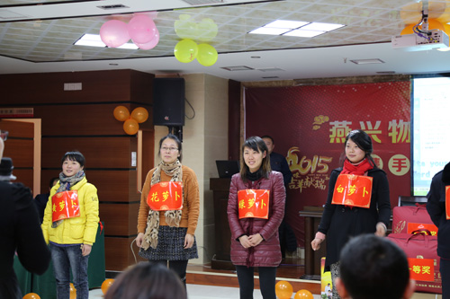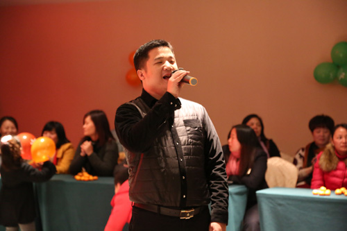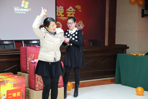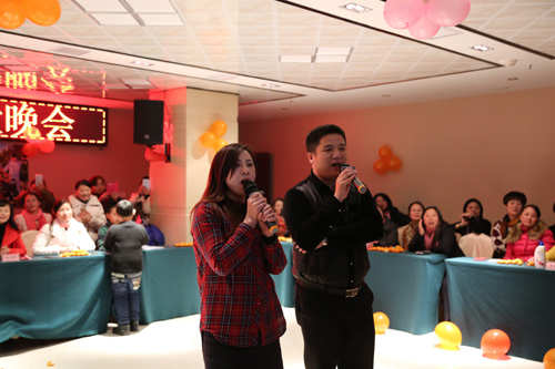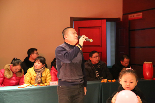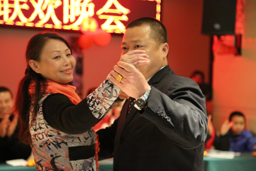 晚會(huì)上,首先由傳統(tǒng)節(jié)目“擊鼓傳花”拉開(kāi)序幕,當(dāng)紅花落在手中,鼓點(diǎn)戛然而止時(shí),手拿紅花的人必須說(shuō)出含“羊”字的祝賀語(yǔ),“喜氣洋洋、洋洋得意、羊年大吉”等吉祥語(yǔ)此起彼伏。晚會(huì)上還精心準(zhǔn)備了幾個(gè)小游戲,由各項(xiàng)目部派出精兵強(qiáng)將參加了“蘿卜蹲、你比劃我來(lái)猜”等游戲,勝出者手捧獎(jiǎng)品喜笑顏開(kāi),抽獎(jiǎng)環(huán)節(jié)更是讓人期盼揪心。接著員工們紛紛上臺(tái)亮出嗓門(mén),一曲曲高歌將晚會(huì)推向一個(gè)又一個(gè)高潮,董事長(zhǎng)劉燕夫婦也為大家深情演唱了一首老情歌。