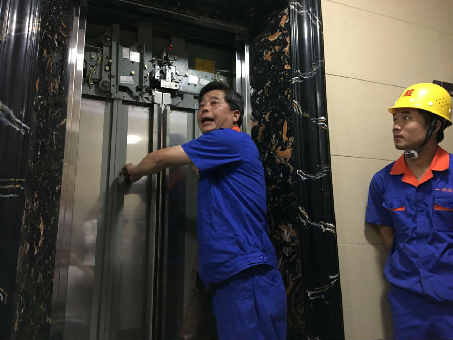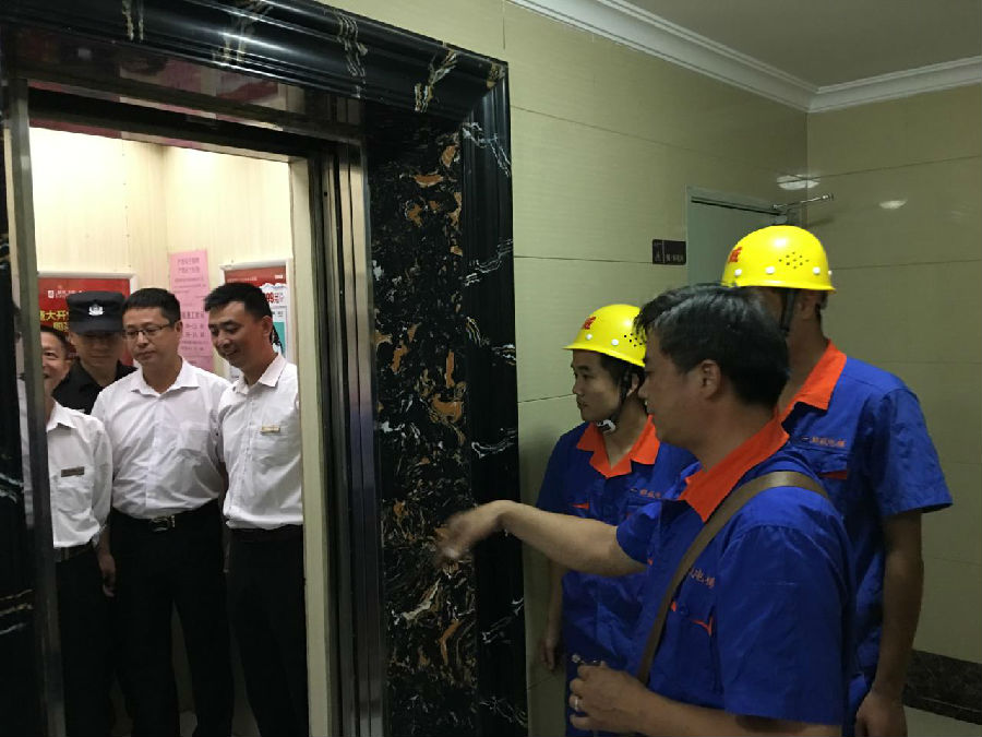 緊接著,贛州群威電梯設(shè)備有限公司維保部陳文平經(jīng)理就電梯的基本構(gòu)造、工作原理向參演人員進行了簡要介紹,指出了不宜乘坐電梯的幾類人員及乘客乘坐電梯時容易發(fā)生的幾種錯誤行為,傳授了電梯出現(xiàn)故障時的自救和施救方法。