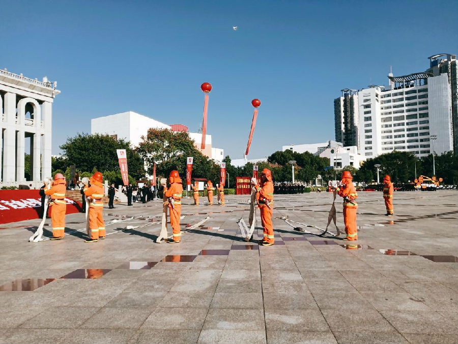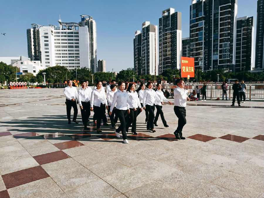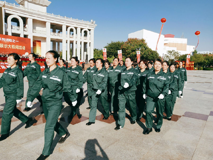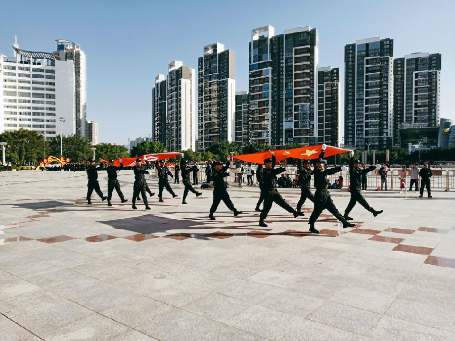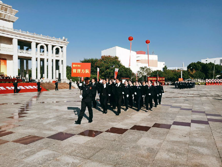 接著,在公司黨委書(shū)記、董事長(zhǎng)劉燕的一聲令下,分列式演練展示和著《運(yùn)動(dòng)員進(jìn)行曲》正式舉行。旗手陣隊(duì)、引路陣隊(duì)和黨員方隊(duì)、特勤方隊(duì)、應(yīng)急方隊(duì)、管理方隊(duì)、管家方隊(duì)、義務(wù)消防方隊(duì)、保障方隊(duì)、環(huán)境管理方隊(duì)的隊(duì)員們,邁著矯健的步伐,精神抖擻地一一走過(guò)檢閱臺(tái)。他們步伐整齊劃一,氣勢(shì)威武雄壯,口號(hào)嘹亮,充分展現(xiàn)了燕興人蓬勃向上的精神面貌和昂揚(yáng)奮發(fā)的工作斗志。