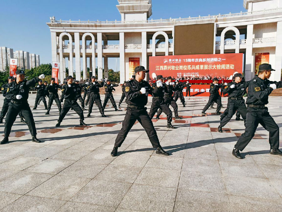 2018年10月28日,江西燕興物業(yè)管理有限公司在贛州市黃金廣場(chǎng)隆重舉行崗位練兵成果展示大演練活動(dòng)。參檢員工以嚴(yán)整的隊(duì)姿和精湛的技能展示,匯報(bào)了崗位練兵的成果,展示了強(qiáng)大的綜合素質(zhì)和良好的精神風(fēng)貌。相關(guān)主管部門(mén)、行業(yè)協(xié)會(huì)和兄弟公司領(lǐng)導(dǎo)、業(yè)主代表等應(yīng)邀參加活動(dòng)。