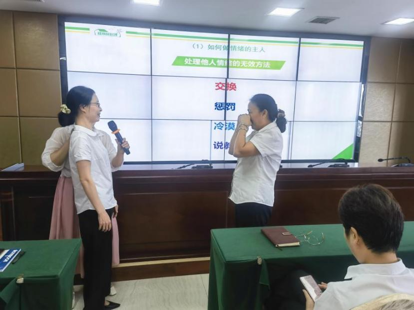 本次講座由梧桐樹心理家庭教育講師、心理咨詢師肖淑敏主講。肖老師從了解什么是和諧家庭、和諧家庭的定義、家庭關(guān)系的分類;如何建立和諧的關(guān)系,如何提升自我和經(jīng)營好情感銀行;和諧家庭之相處法則,復(fù)式家庭關(guān)系、夫妻關(guān)系、親子關(guān)系等方面進行了授課。課上還通過形象生動的舉例、幽默風趣的話語、形象生動的情景模擬為大家講解各類家庭關(guān)系的處理方式及心理調(diào)整。整個講座過程中充滿了歡聲笑語,氣氛輕松愉悅。