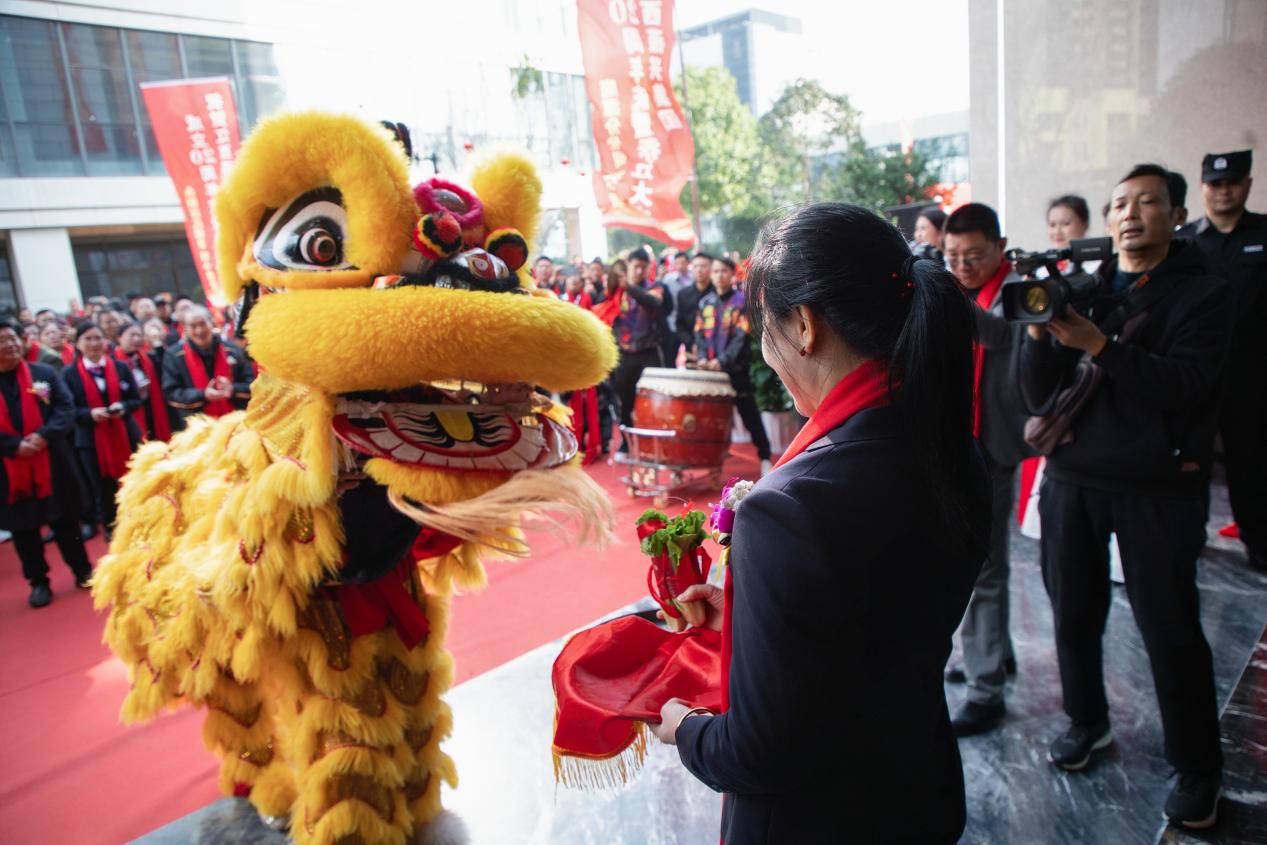 瑞獅歡舞歌盛世,龍騰獅舞送吉祥。在采青儀式上,劉燕董事長上臺接青,寓意著生生發(fā)發(fā),大吉大利,生財有道,財運亨通,福氣滿滿!